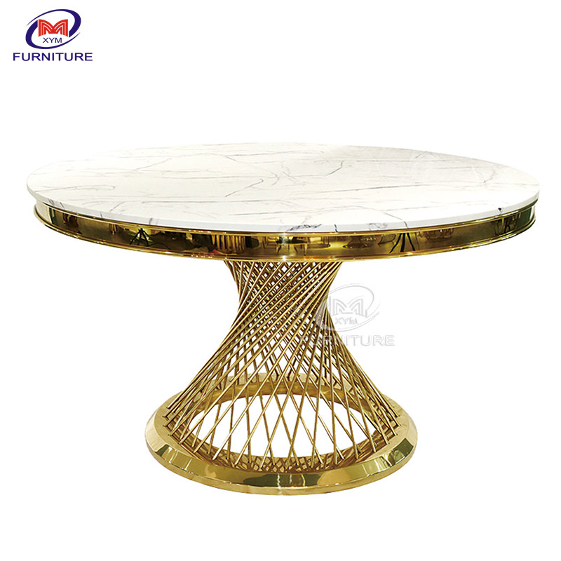 | نام محصول: | میز و صندلی مدرن استیل ضد زنگ میز عروسی روی میز مرمر گرد | ||